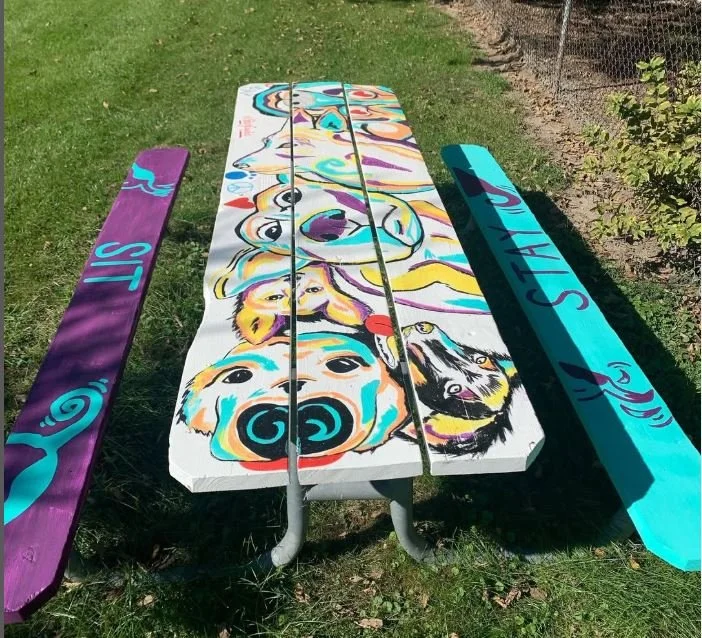 Custom hand-painted murals weaving creativity, conservation & vibrant colors for eye-catching results Blue Heron & Prairie Fameflower Dog Mural TSB Fish TSB Cattails